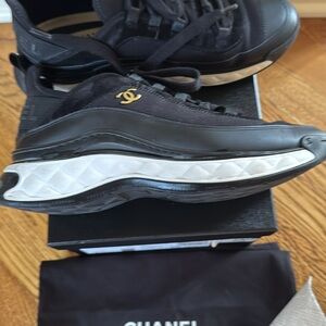 CHANEL Women’s Black Sneakers Size 40 Interlocking CC with quilted pattern