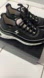 Elevate your look with CHANEL sneakers. Black upper with cream accents. Stylish and comfortable.