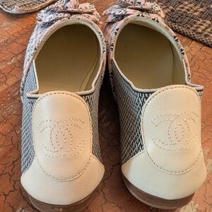 Elegant CHANEL slip ons with floral pattern. made in Italy. size 39. comes with box.