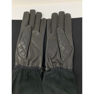 CHANEL Women's Size 7.5 Quilted Leather and Suede Long Opera Gloves Black