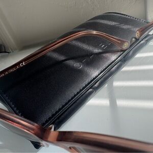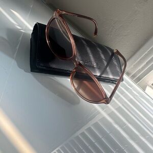 Stylish CHANEL sunglasses with a pink frame. Perfect for adding elegance to any look.