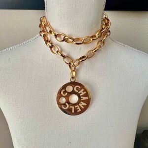 Stunning vintage oversized gold CHANEL coco chain pendant necklace