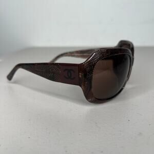 CHANEL Y2K Vintage Acetate Brown CC Lace Effect Sunglasses 5146