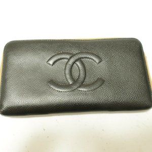 CHANEL Zip around wallet. 100% authentic. I had the outside dyed black. The interior is tan colored and in great condition. The zipper works and can be fully opened and closed but needs a little care. The corners Feel free to make an offer. I put the price at the 'authentication' level in case you want it authenticated by Poshmark.