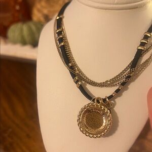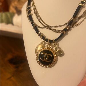This is a such cute piece! Chanel authentic stamped upcycled button reworked into a black and gold choker charm. Clasp back and extender