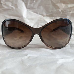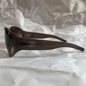 CHANEL brown wraparound sunglasses with hardshell carrying case