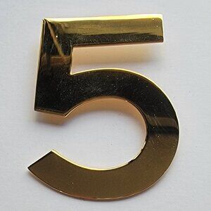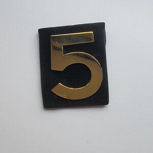 CHANEL classic gold number 5 brooch pin. 2.25" h x 1.5" w