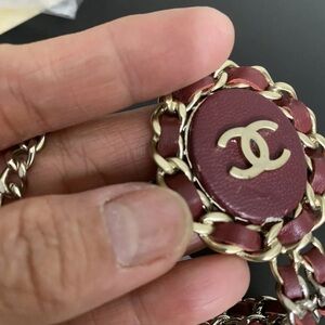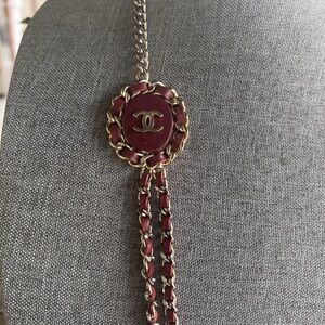CHANEL double Strand Necklace Rope Style red Leather Long Necklace Approx 30”