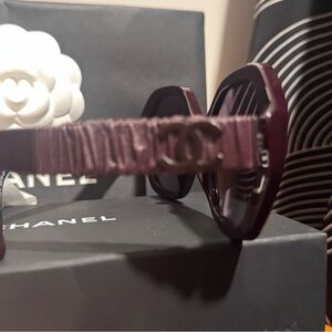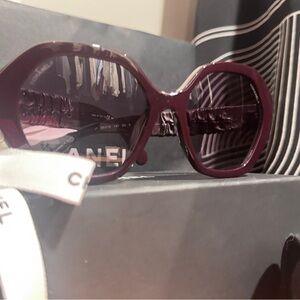 Stylish CHANEL lambskin sunglasses in a rich plum shade. Perfect for adding a touch of elegance.