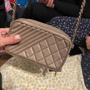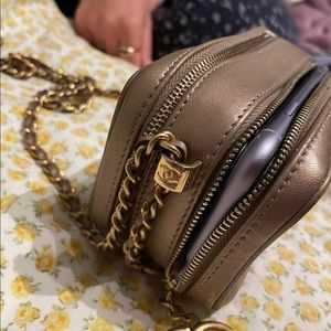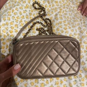 CHANEL quilted metallic gold/copper cross body mini camera bag
