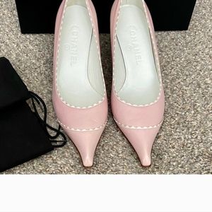 CHANEL shoes Light Powder Pink and White leather Heels
