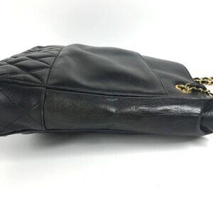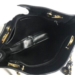 CHANEL vintage Matelasse Double Chain Tote Bag Shoulder Bag Leather Black/Gold