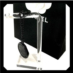 CHANEL BLACK BAG CHARM KEYCHAIN KEY RING