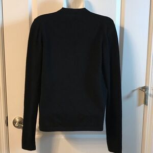 I believe this cashmere sweater to be a 36/38 no longer has the size label. Measuring across the shoulder seam to seam is 14.5” pit to pit is 17” from the top of the collar to the bottom of the sweater is 22” sleeve length is 25”. Chanel label is only held on one side.
