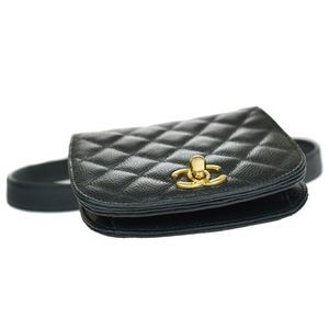 CHANEL CC Logo Matelasse Bum Bag Pouch Belt Caviar Leather