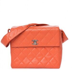 CHANEL Caviar Quilted Shoulder Bag Orange