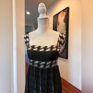 CHANEL Fall 2001 Black and White Pleated Silk Cocktail Dress