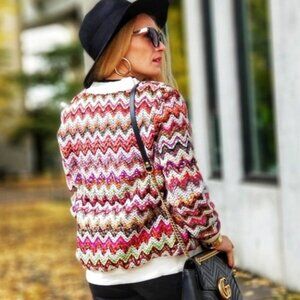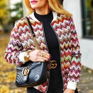 Loooove this colorful tweed bomber jacket!! It is so unique, the color combo is cheerful and in my favorite tweed material.