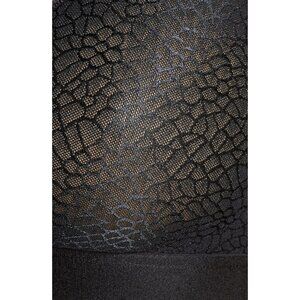 Sides and back are patterned mesh with sewn-on elastic at top and bottom.