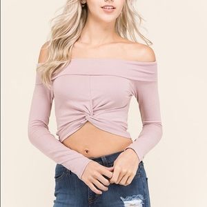 Show off that sun-kissed skin in this long Sleeve light weight off shoulder crop top. Available in blush, wine & white. PRICE FIRM