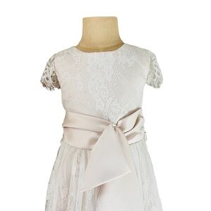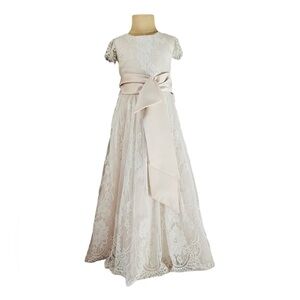CHANTILLY PLACE GIRLS SIZE 5 FORMAL DRESS CHAMPAGNE & WHITE LACE OVERLAY