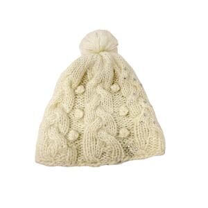 CHAOS Cream Beaded One Size Chunky Knit Beanie Hat