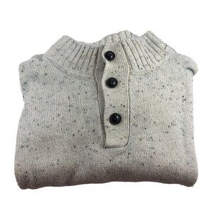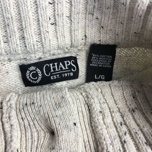 This white Chaps pullover sweater offers a classic look with its 1/4 button design. Perfect for colder weather, this men's large size sweater promises comfort and style.
