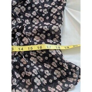 CHAPS 1978 Top Womens L Black Pink Ruffled Floral Flutter Sleeve Chiffon Blouse