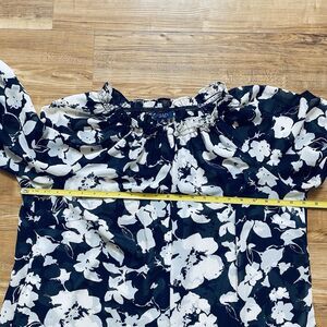 CHAPS 2X Women’s Navy White Floral Sheer Peasant Cottagecore Chic Beachy Blouse