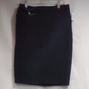 CHAPS BLACK DENIM PENCIL SKIRT MIDI LENGTH SILVER BUCKLE FAUX BELT ACCENT 4 POCKET COTTON WEAR ON BELT HOLES, WOMEN'S SIZE 8