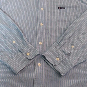 CHAPS BUTTON DOWN EASY CARE LOGO LIGHT BLUE & WHITE STRIPE, SHIRT