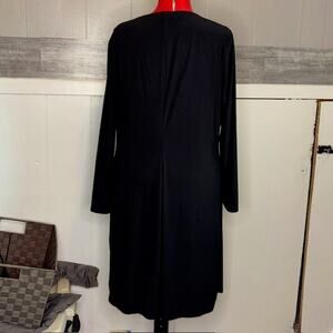 CHAPS Black Faux Wrap Midi Knit Dress with "Leather" sides