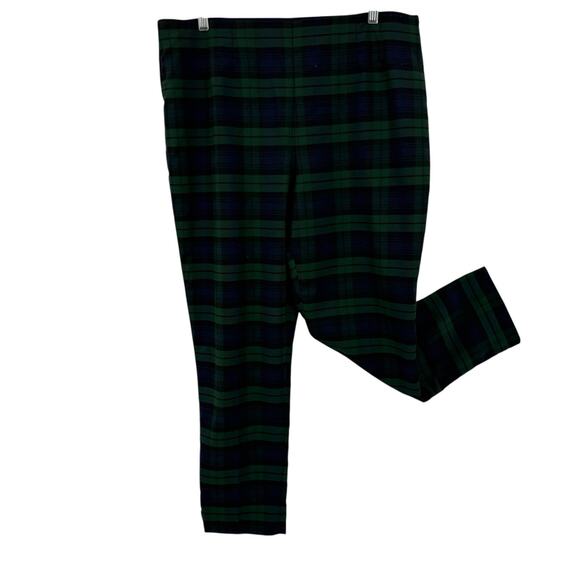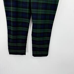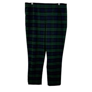 CHAPS Blue Green Tartan Plaid Ankle Pants Women 16 Stretch Side Zip Prep Holiday