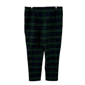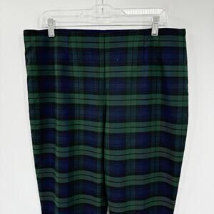 CHAPS Blue Green Tartan Plaid Ankle Pants Women size 16 inner elastic waistband, Side Zip
