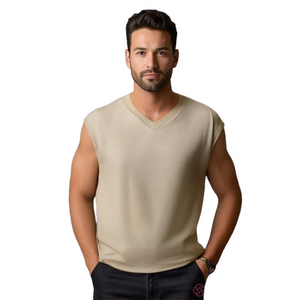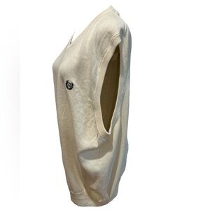 Classic beige sleeveless sweater by Chaps. Features a V-neck design. Perfect for layering.