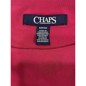 Nice CHAPS womens dress in a size small. Fuchsia and black colorblock. Side slit with color block inside. Cap sleeves. Polyester Elastaine for stretch. Gathered middle for a nice fit. Middle measures approximately 13” without stretch allowance. Pullover, no zipper.Well made dress that accents your shape. Good condition with no rips tears or stains. No obvious flaws. Please see pictures for measurements and condition.