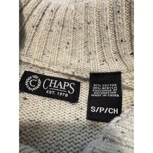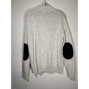 CHAPS Cream Heathered Mock Neck Elbow Patch Sweater Fisherman Academic Small
