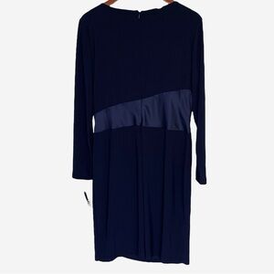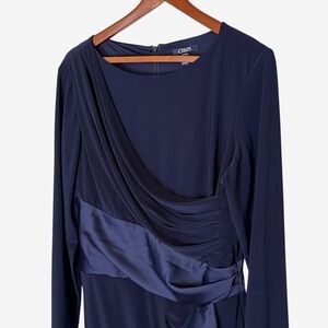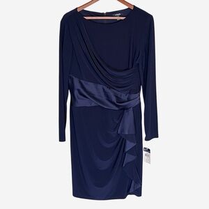 CHAPS Dress Womens XL Navy Blue Satin Sash Ruffle Front Elegant Cocktail NEW