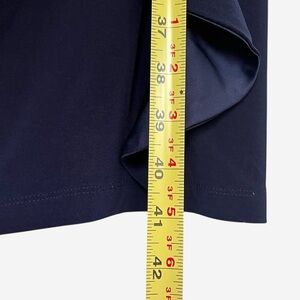 Just Below Knee, Lined, Stretch, Satin Sash With Draped/Ruffle Front, Back Zip Closure, Navy Blue