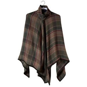 CHAPS EST 1978 VINTAGE HIGH NECK WOOL BLEND PLAID GREEN TAN GREEN CAPE COAT