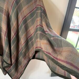 CHAPS EST 1978 VINTAGE WOOL BLEND PLAID GREEN TAN GREEN CAPE COAT SZ L