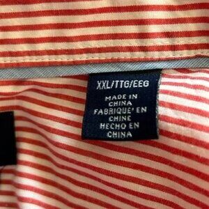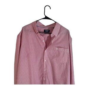 CHAPS Easy Care Button-Down Shirt Men's Size XXL Red White Striped Long Sleeve