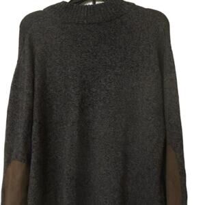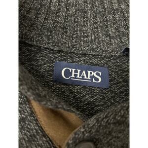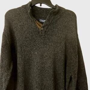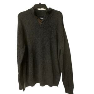 CHAPS Heathered Dark Gray Elbow Patch Henley Button 100% Cotton Sweater XL