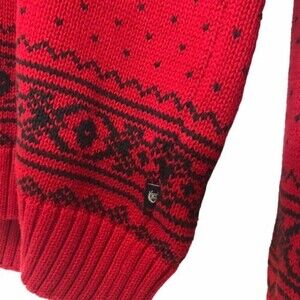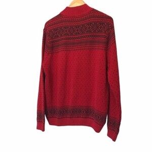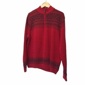 CHAPS Mens Mock Neck 1/4 Zip Up Sweater Black Red Size L Heavy Knit Nautical Good preowned condition Questions please ask before purchase See photos for measurements Measurements are laying flat