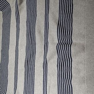 CHAPS Men's Sweater Size XXL Gray Blue Striped Embroidered Logo NEW. Very Comfortable material. See photos for measurements