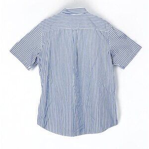 Chaps men's easy care short sleeve shirt in size XL. Cotton/polyester blend fabric. Blue and white pin stripe print. Buttons down the front. Chest pocket with embroidered Chaps logo. Excellent preowned condition. Photos are part of the description, please zoom in for more details.