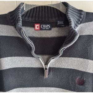 CHAPS Men's XXL Dk. Blue/Gray Collar Zip Pullover Striped Heavyweight Sweater #B