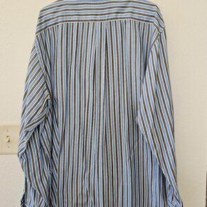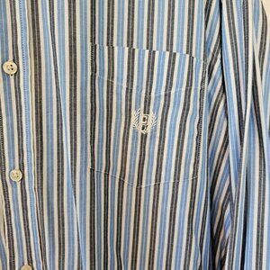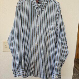 CHAPS Men's XXL Shirt Blue and Gray Striped Button Down Long Sleeves