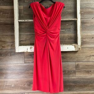 CHAPS Midi Dress Women's Size Medium Watermelon Pink Slinky Twist Front Modest