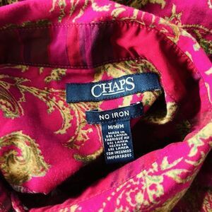 CHAPS No Iron paisley button front shirt size M. 100% cotton, very smooth feel. Button cuffs, shirttail bottom. Approximate measurements are pit to pit 20”, length from shoulder approximately 25”.